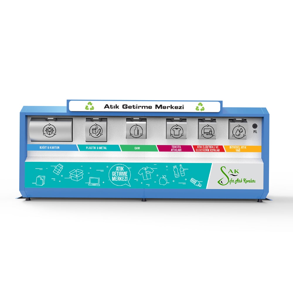 Atık Getirme Merkezleri, sıcağa, soğuğa ve yağmura dayanıklı olarak üretilmekte ve tamamen statik boya ile boyanmaktadır.